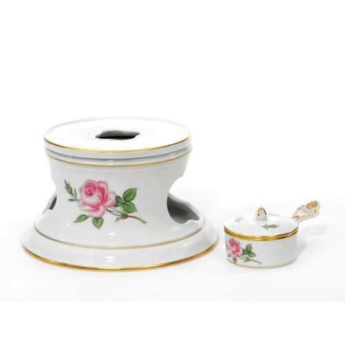 Stövchen, Form "Neuer Ausschnitt", Rose mitte, bunt, Goldrand, ø 16 cm