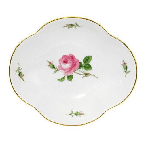 Schälchen, Form "Neuer Ausschnitt", Rose mitte, bunt, Goldrand, L 14 cm