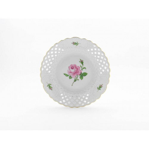 Teller, durchbr., Rose mitte, bunt, Goldrand, ø 24 cm