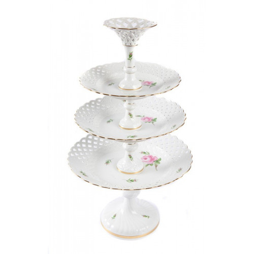 Etagere,durchbr. mit Vase, Rose mitte, bunt, Goldrand, 62,5 cm