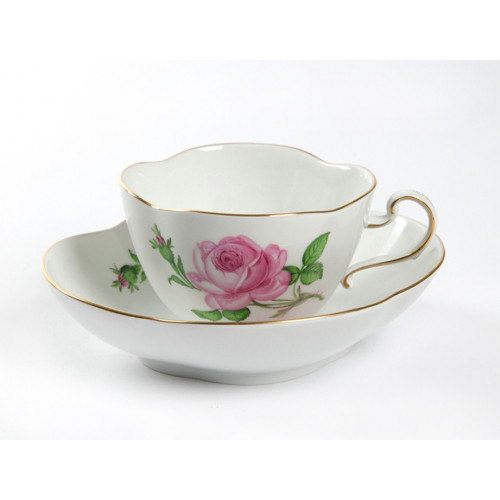 Tasse m.U., Rose mitte, bunt, Goldrand, 0,15 l