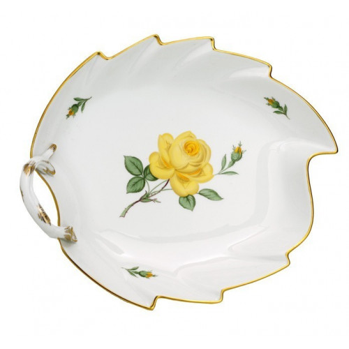 Konfektblatt, Form "Neuer Ausschnitt", Rose mitte, gelb, Goldrand, L 19 cm