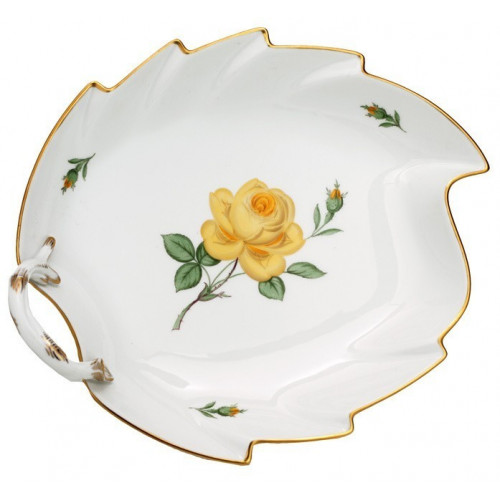 Konfektblatt, Form "Neuer Ausschnitt", Rose mitte, gelb, Goldrand, L 22 cm