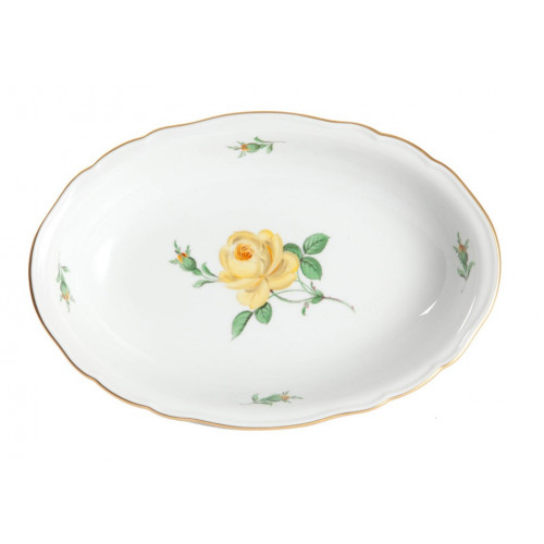Beilageschale oval, Rose mitte, gelb, Goldrand, L 25 cm