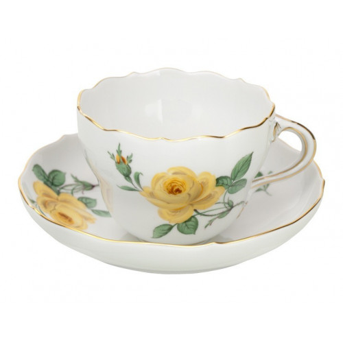 Kaffeetasse m.U., Form "Neuer Ausschnitt", Rose mitte, gelb, Goldrand, V 0,20 l
