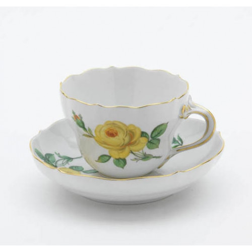 Kaffeetasse m.U., Rose mitte, gelb, Goldrand, V 0,25 l