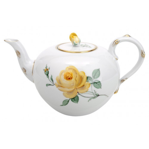 Teekanne, Form "Neuer Ausschnitt", Rose mitte, gelb, Goldrand, V 1,00 l