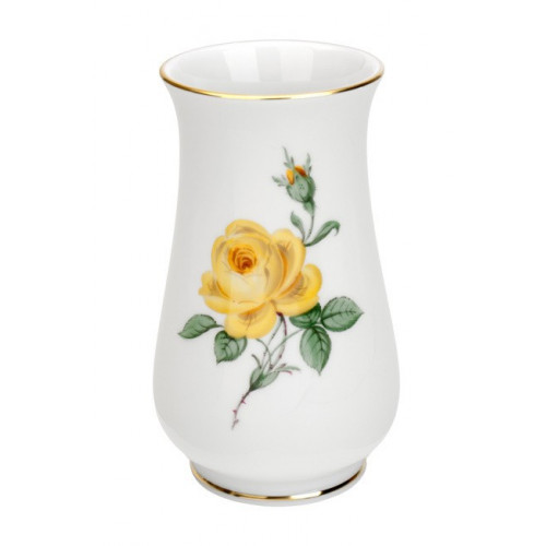 Vase, Form "Neuer Ausschnitt", Rose mitte, gelb, Goldrand, H 10 cm