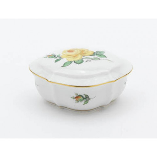 Dose, Rose mitte, gelb, Goldrand, L 9,5 cm