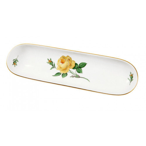 Schale, Form "Neuer Ausschnitt", Rose mitte, gelb, Goldrand, L 24 cm
