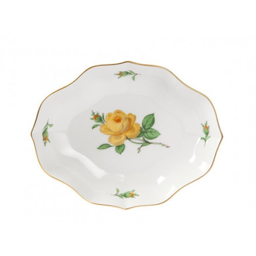 Schälchen, Form "Neuer Ausschnitt", Rose mitte, gelb, Goldrand, L 16 cm