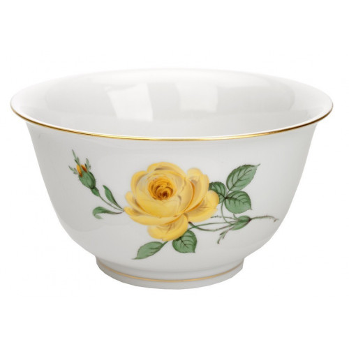 Müslischale, Form "Neuer Ausschnitt", Rose mitte, gelb, Goldrand, L 16 cm