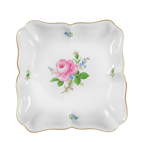 Beilageschale viereckig, Rose und Vergißmeinnicht, mitte, bunt, Goldrand, L 22 cm