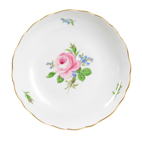 Dessertschale, Form "Neuer Ausschnitt", Rose und Vergißmeinnicht, mitte, bunt, Goldrand, 21 cm