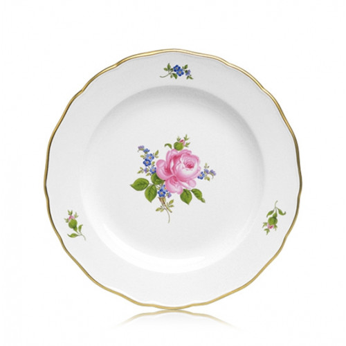 Speiseteller, Form "Neuer Ausschnitt", Rose und Vergißmeinnicht, mitte, bunt, Goldrand, ø 28 cm