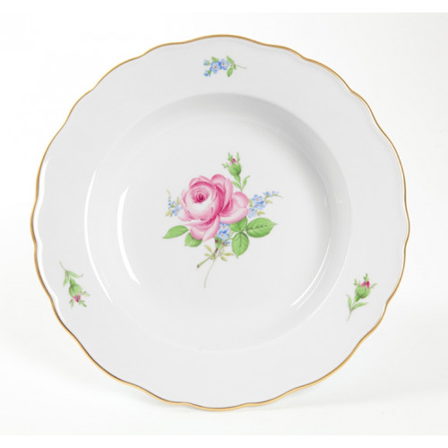 Suppenteller, Form "Neuer Ausschnitt", Rose und Vergißmeinnicht, mitte, bunt, Goldrand, ø 24 cm