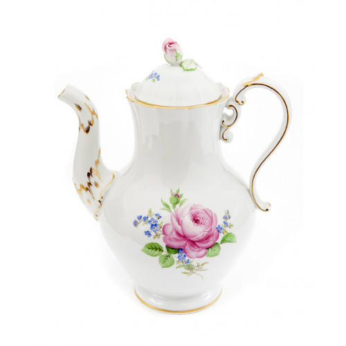Kaffeekanne, Form "Neuer Ausschnitt", Rose und Vergißmeinnicht, mitte, bunt, Goldrand, V 1,50 l