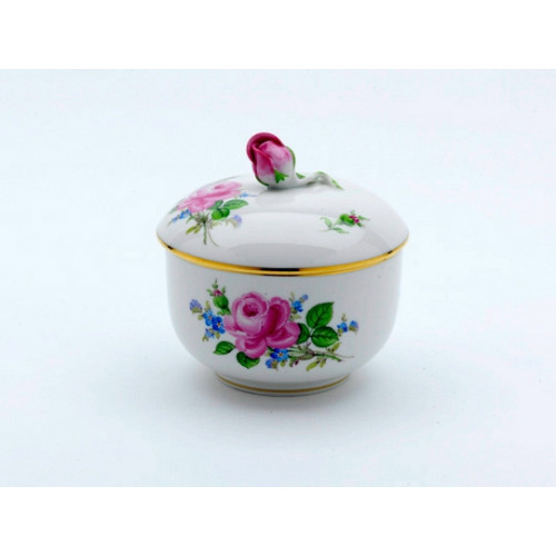 Zuckerdose, Rose und Vergißmeinnicht, mitte, bunt, Goldrand, ø 10 cm
