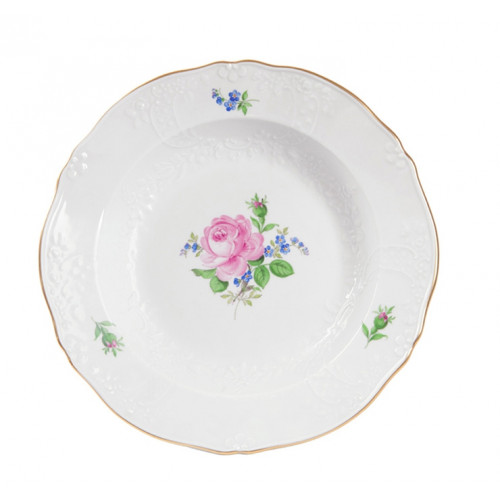 Speiseteller, Rose und Vergißmeinnicht, mitte, bunt, Goldrand, 25 cm