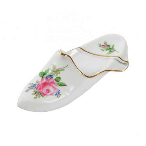 Pantoffel links, Rose und Vergißmeinnicht, mitte, bunt, Goldrand, L 9,5 cm