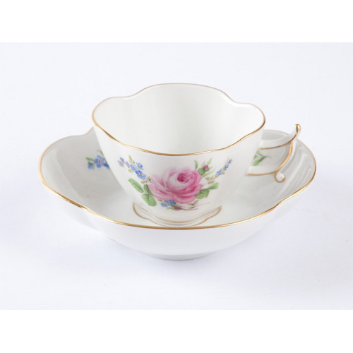 Tasse m.U., Rose und Vergißmeinnicht, mitte, bunt, Goldrand, 0,1 l