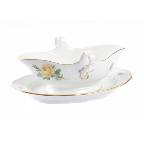 Sauciere, Rose und Vergißmeinnicht, mitte, gelb, Goldrand, V 0,40 l
