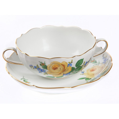 Suppentasse m.U., Form "Neuer Ausschnitt", Rose und Vergißmeinnicht, mitte, gelb, Goldrand, V 0,35 l