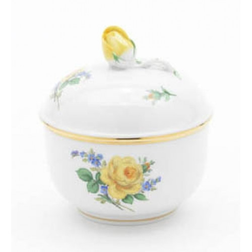 Zuckerdose, Rose und Vergißmeinnicht, mitte, gelb, Goldrand, ø 7,5 cm