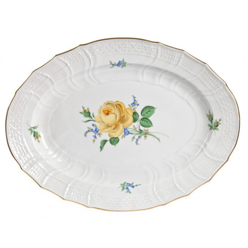 Platte,oval, Rose und Vergißmeinnicht, mitte, gelb, Goldrand, 42x31 cm