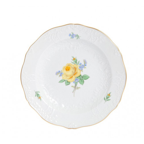 Dessertteller, Rose und Vergißmeinnicht, mitte, gelb, Goldrand, Ø 20 cm