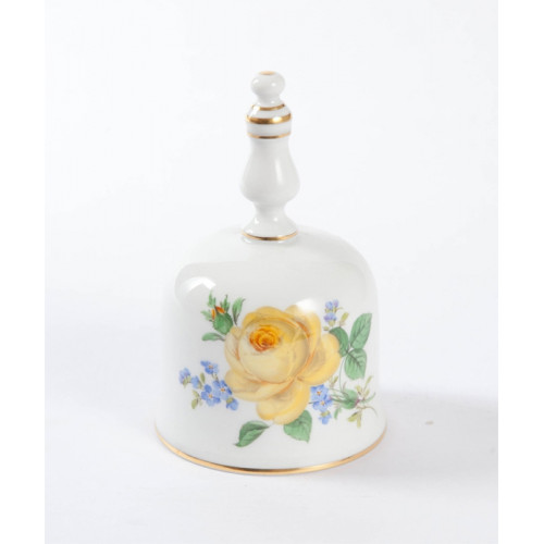 Tischglocke, Rose und Vergißmeinnicht, mitte, gelb, Goldrand, H 11 cm
