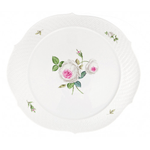 Tortenplatte, Rosenmalerei, Weiße Rose, vielblättrig, purpur Kern, bunt, weißer Rand, ø 38,5 cm