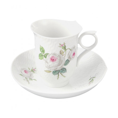 Kaffeetasse m.U., Rosenmalerei, Weiße Rose, vielblättrig, purpur Kern, bunt, weißer Rand, V 0,18 l