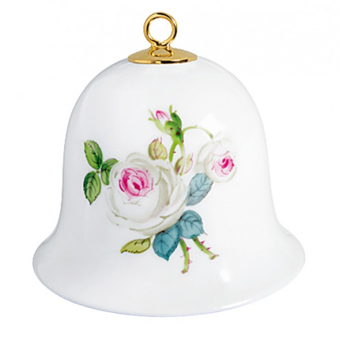 Miniatur-Glocke, Rosenmalerei, Weiße Rose, vielblättrig, Purpurkern, bunt, weißer Rand, H 5 cm