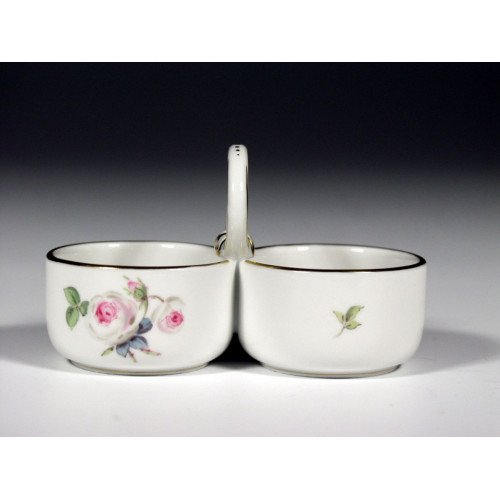 Salzgefäß, Weiße Rose mit Purpurkern, Goldrand, L 10 cm