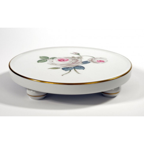 Untersetzer, Weiße Rose mit Purpurkern, Goldrand, 15 cm