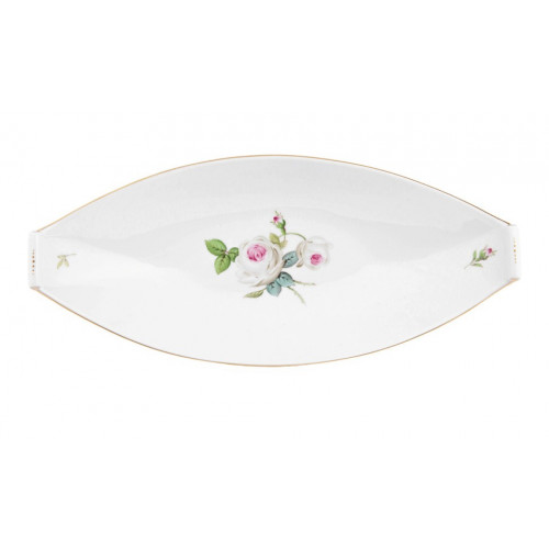 Beilageschale oval, Weiße Rose mit Purpurkern, Goldrand, L 33 cm