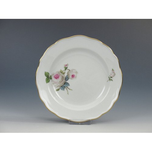 Teller, Form "Neuer Ausschnitt", Weiße Rose mit Purpurkern, Goldrand, ø 16 cm