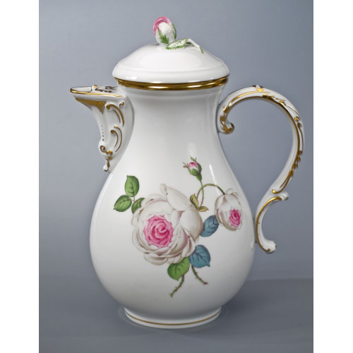 Kaffeekanne, Weiße Rose mit Purpurkern, Goldrand, V 0,85 l