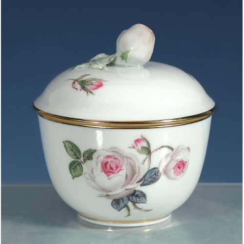 Zuckerdose, Weiße Rose mit Purpurkern, Goldrand, ø 6 cm