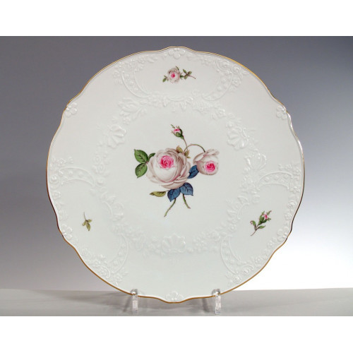 Tortenplatte rund, Weiße Rose mit Purpurkern, Goldrand, Ø 32 cm