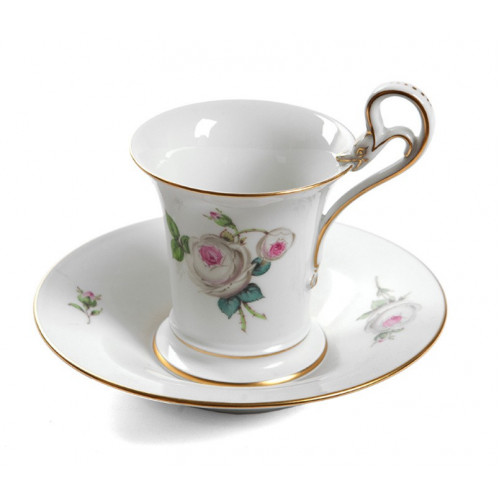 Kaffeetasse m.U., Weiße Rose mit Purpurkern, Goldrand, 0,09 l