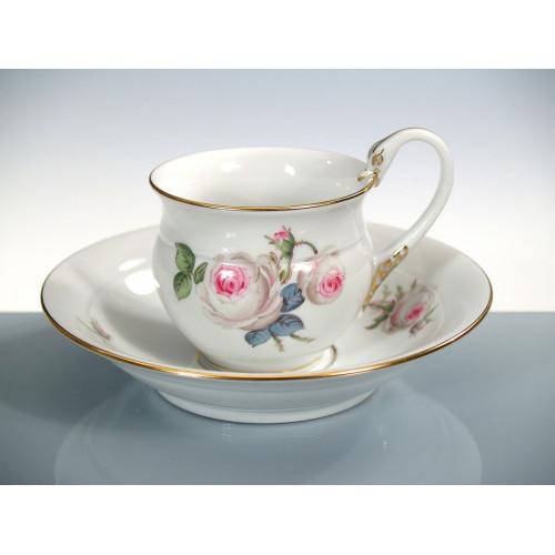 Kaffeetasse m.U., Weiße Rose mit Purpurkern, Goldrand, 0,13 l