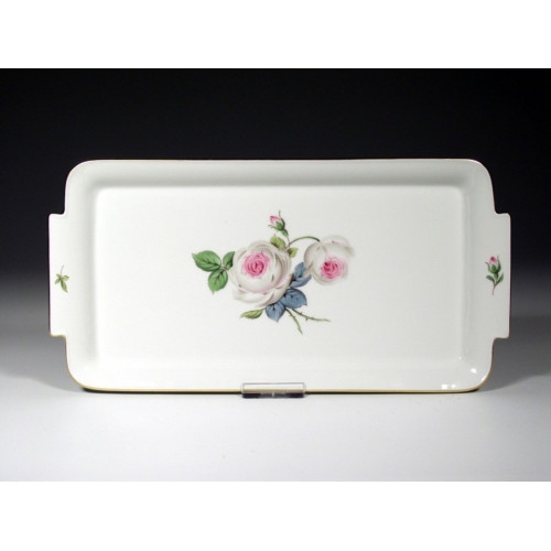 Platte,rechteck., Form "Paris", Weiße Rose mit Purpurkern, Goldrand, L 29 cm