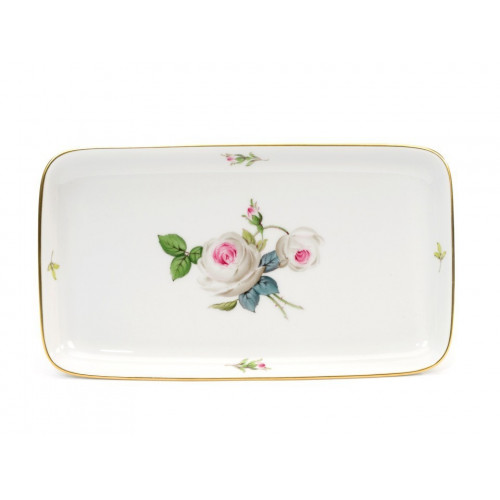 Platte,rechteck., Weiße Rose mit Purpurkern, Goldrand, L 23 cm