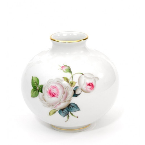 Vase, Form "Neuer Ausschnitt", Weiße Rose mit Purpurkern, Goldrand, H 10,5 cm