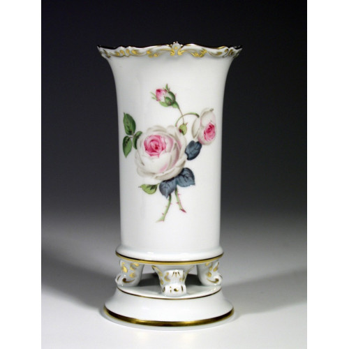 Vase, Weiße Rose mit Purpurkern, Goldrand, H 14 cm