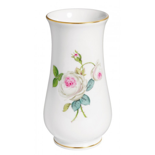 Vase, Form "Neuer Ausschnitt", Weiße Rose mit Purpurkern, Goldrand, H 14 cm
