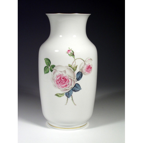 Vase, Weiße Rose mit Purpurkern, Goldrand, H 30 cm
