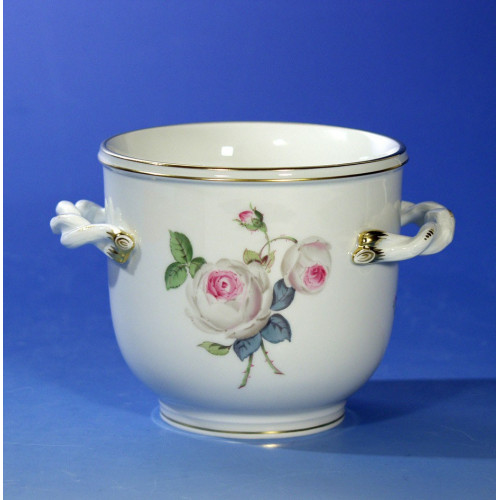 Blumentopf, Weiße Rose mit Purpurkern, Goldrand, H 11 cm
